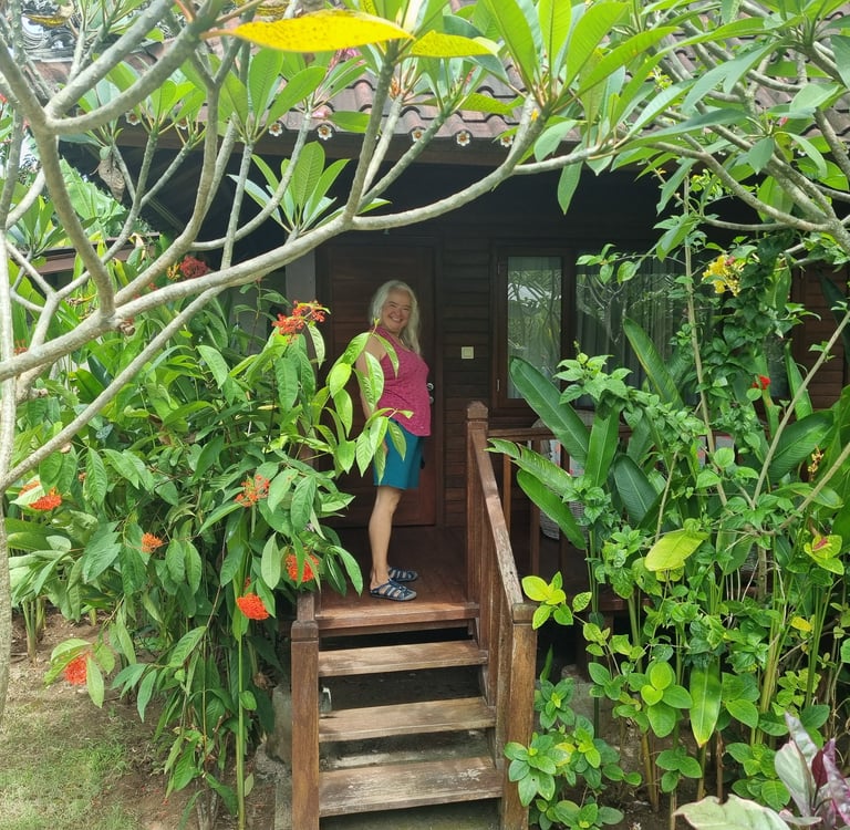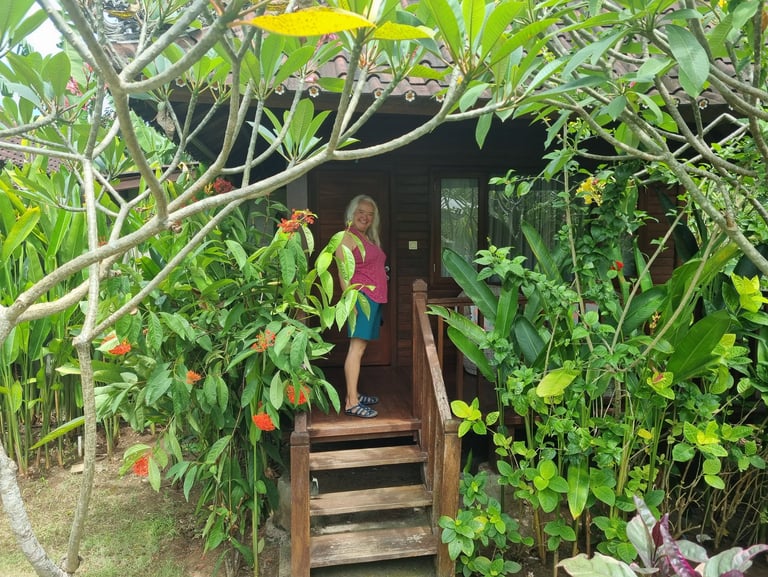 Im tropischen Regen startet unser Flugzeug mit über einer Stunde Verspätung von Sorong. Nun bleibt uns nicht mal mehr eine Stunde, um in Makassar unseren Folgeflug nach Denpasar zu erreichen. Wir schaffen es, allerdings fürchten wir, das unser Gepäck nicht so schnell ist und auf der Strecke bleibt. Doch irren wir uns. Die Logistik funktioniert und positiv überrascht nehmen wir unsere beiden Rücksäcke in Denpasar in Empfang. Per Taxi geht es zu der Unterkunft, die von Putu und Nyoman, einer sehr freundlichen Familie betrieben wird.