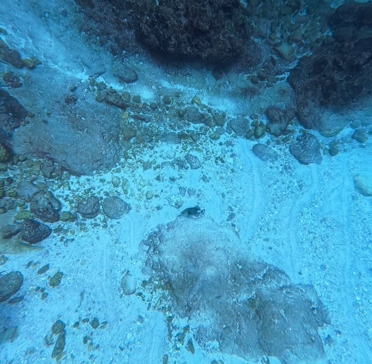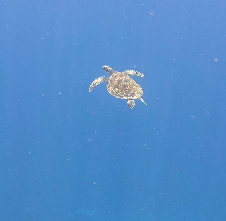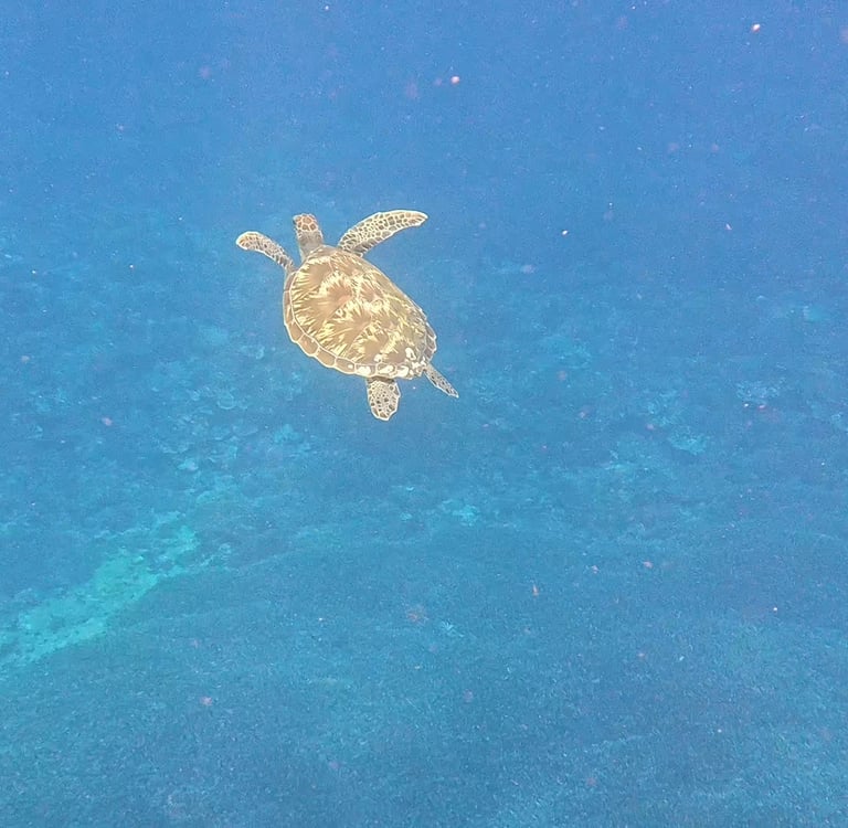 Mit einem sogenannten Jukung brechen wir zum Schnorcheln auf. Diese Boote werden auch Spiderboat genannt, da sie mit ihren Auslegern wie vierarmige Spinnen aussehen. Als erstes steuert unser Kapitän Katu den berühmten Manta Point an. Hier sind oft Mantarochen zu sehen, die diese Stelle als Putzstation nutzen. Leider ist es bedeckt, das Wasser durch die kräftigen Wellen aufgewühlt und trübe. Es ist kein Manta vor Ort. Schade. Weiter geht es zu zwei weiteren Buchten, in denen wir auf viele Fische, aber insbesondere in der zweiten Bucht viele Touristen treffen. Ich werde im Wasser von einem Guide angesprochen mit den Worten „hello Sir, which is your boat“. In dieser welligen Landschaft, in der viele Schnorchel aus dem Wasser ragen, sucht er die Personen, die mit seinem Boot hierher gereist sind. Ich zeige auf unser Spinnenboot und der Guide begibt sich weiter auf Suche. Am letzten Spot am Nordufer von Nusa Lembongan lassen wir uns mit der Strömung treiben und treffen zu Ruths großer Freude eine Schildkröte an.