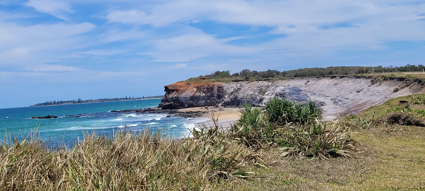 Wir fahren weiter bis nach Port Macquarie, wo wir auf einem Holzweg, der auf halber Baumhöhe entlangführt einen Regenwald begehen. Hier können wir entpsannt schlendern, ohne dauernd auf den Boden zu schauen. Anschließend machen wir einen Abstecher zum Sugarloaf Lighthouse, einem Leuchtturm, der sehr schön auf einer Halbinsel liegt. Es stürmt hier und die See ist bei blauem Himmel schön aufgewühlt.