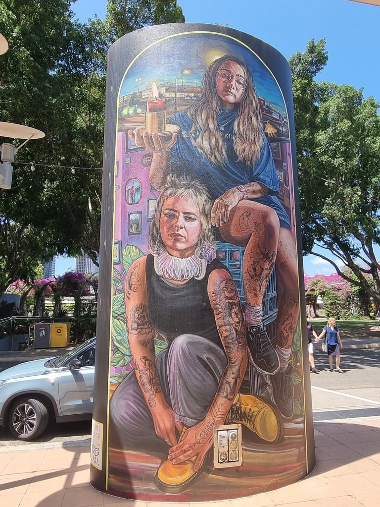 Bei Sonnenschein und trockener, angenehmer Hitze erkunden wir die Stadt. Es ist Wochenende und es überrascht uns, dass in den breiten Straßen dieser 2,3 Millionen Einwohnermetropole nur wenig Verkehr herrscht. Wir passieren das hundert Jahre alte Rathaus, in dessen großem Saal die Rolling Stones 1966 einen ihrer ersten Auftritte in Australien hatten. Der Brisbane River windet sich durch die Stadt. Wir spazieren an die Southbank einen schöne grüne Uferpromenade entlang, blicken auf die Skyline und gönnen uns ein Avocado-Brot in einem Cafe. Am Ufer gibt es einen angelegten Badesee mit Sandstrand in dem Kinder und Erwachsene plantschen. Die entspannten Menschen und die Athmosphäre in der Stadt gefallen uns sehr. Kein Müll säumt den Weg, so wie wir es aus Indonesien kannten und auch das ist eine Wohltat für unsere Augen. Auf der anderen Uferseite findet im City Botanic Garden immer sonntags ein Food-und Gemüse-Markt statt. Neun Wochen haben wir jeden Tag in einem Restaurant / Warung gegessen. Nun werden wir morgen erstmalig wieder selber kochen; zum einen weil wir gerne selber kochen, zum anderen da die Preise der hiesigen Restaurants unseren Reiseetat sprengen würden. Daher kaufen wir hier frisches Gemüse. Da Ruths Smartphone den Geist aufgegeben hat, erwirbt sie ein Neues. Im Reisebudget war das nicht eingeplant, doch sind wir von diesen kleine digitalen Alleskönnern abhängig. Wir treffen auf einige Kirchen, die eingebettet zwischen den Hochhäusern klein wirken. Der Anblick dieser Gotteshäuser vor den Türmen des Mammons wirkt anachronistisch und ein wenig skurill.