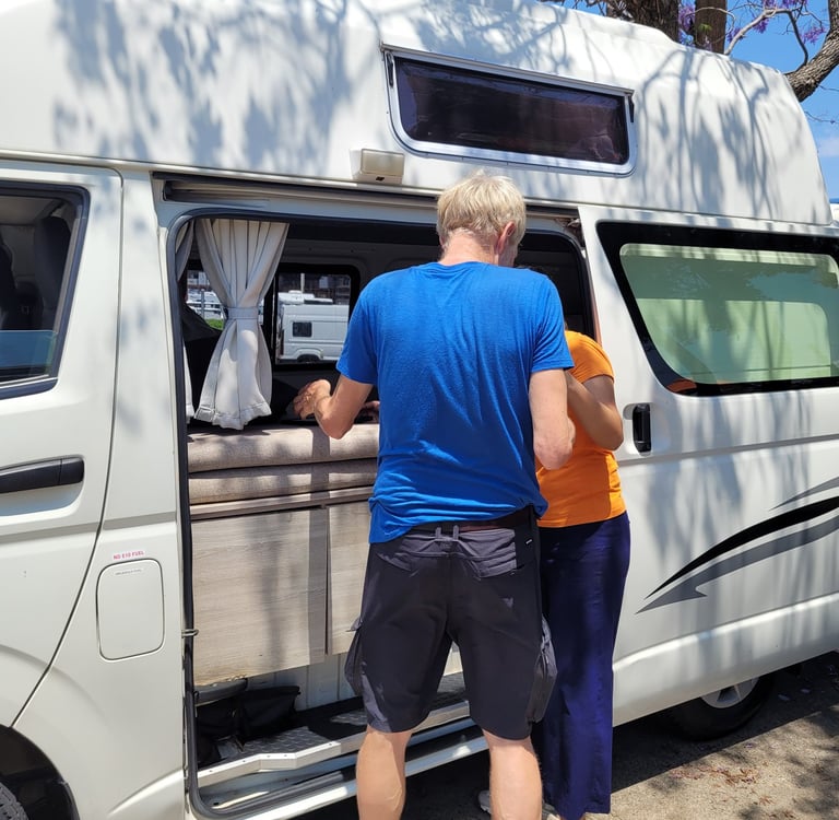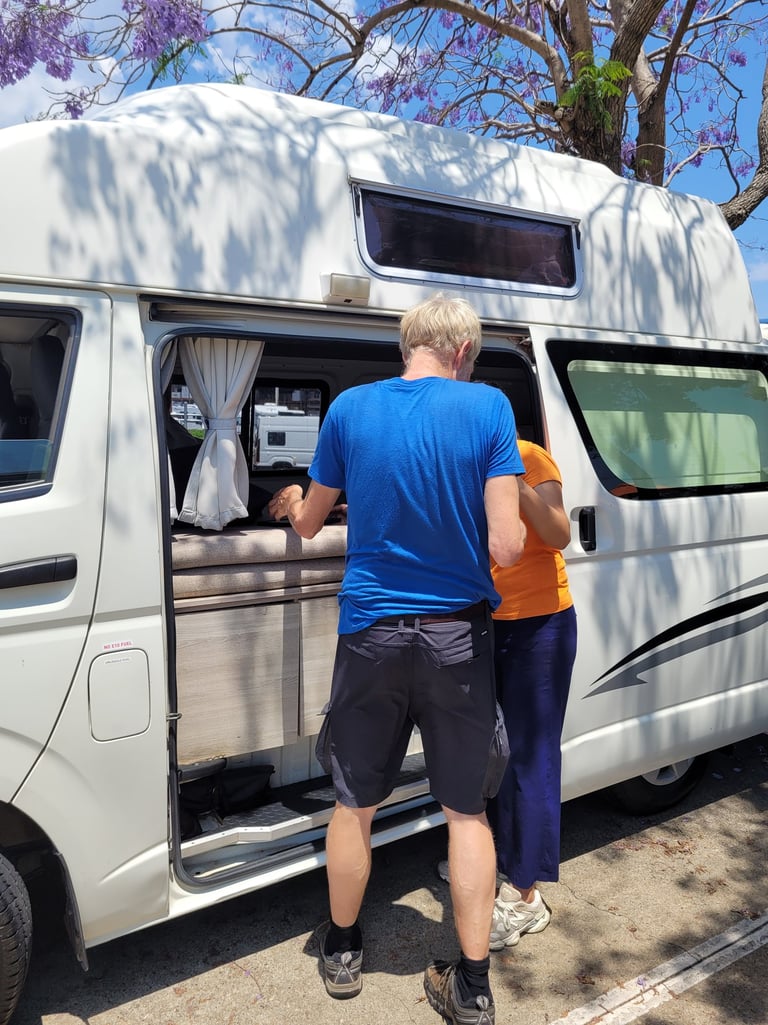 Montag vormittag übernehmen wir unseren Campervan. Obwohl wir einen Campervan mit nur zwei Schlafplätzen gebucht haben, erhalten wir einen mit vier Betten und zwei fest eingebauten, nicht drehbaren Sitzen im Wohnbereich. Die Aufteilung ist für zwei Personen ineffektiv. Ein anderes Modell hat unser Anbieter nicht vor Ort. Wir äußern freundlich, aber bestimmt unseren Unmut und sie organisieren von einem Schwesterunternehmen einen Camper, so wie wir ihn wollen. Das kostet zwar Nerven und etwas über zwei Stunden Zeit, aber da wir ja fünf Wochen in dem Fahrzeug leben wollen, stört uns das nicht sehr. Anschließend geht es zu einer Shoppingmall, in der wir einzelnes Equipment und vor allem Lebensmittel erwerben, denn ab heute wollen wir überwiegend selber kochen. Südlich von Brisbane beziehen wir Quartier und verstauen Lebensmittel und Gepäck in unserem neuen Zuhause. Auch mal angenehm nicht täglich aus dem Rucksack zu leben und diesen jeden Tag aufs Neue zu packen.