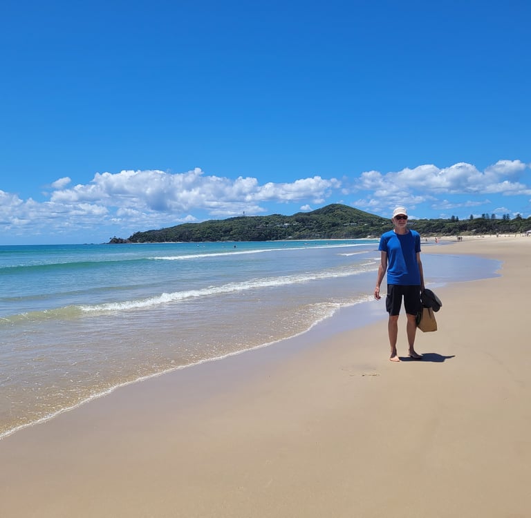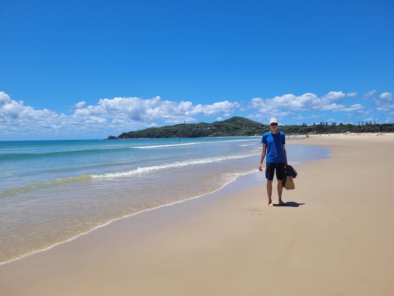 Auf dem Highway M1 legen wir unseren ersten 150 km bis nach Byron Bay zurück. Das Fahren mit Rechtssteuer im Linksverkehr fällt mir leichter als gedacht. Wahrscheinlich da wir in Indonesien bereits zwei Monate Linksverkehr gewohnt waren und auch selber mit dem Motorroller uns dort bewegten. Selbst dass Blinker und Scheibenwischer im Gegensatz zu unseren heimischen Fahrzeugen seitenverkehrt sind, rafft mein Gehirn schnell.