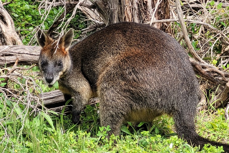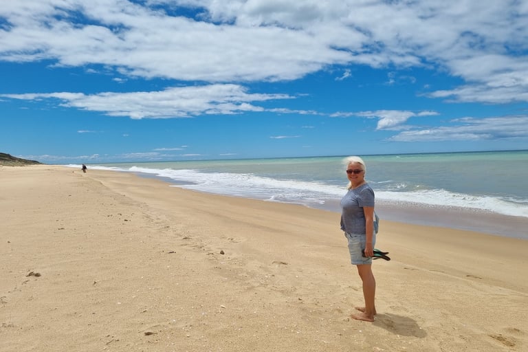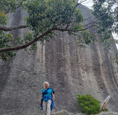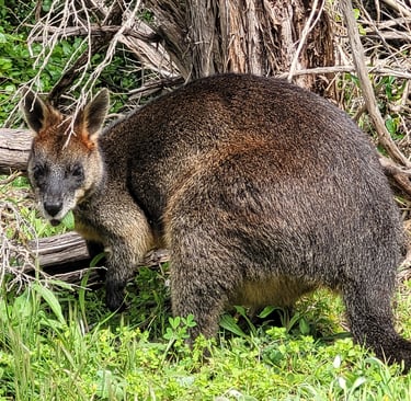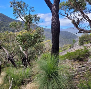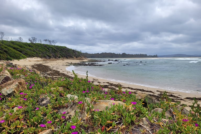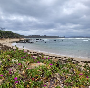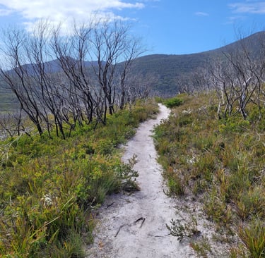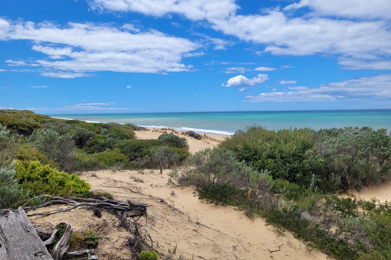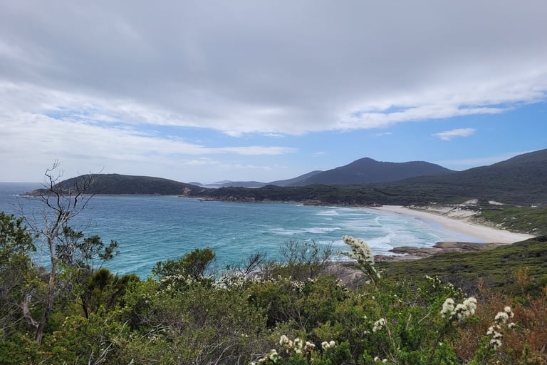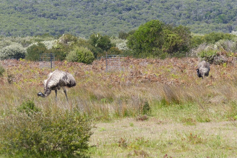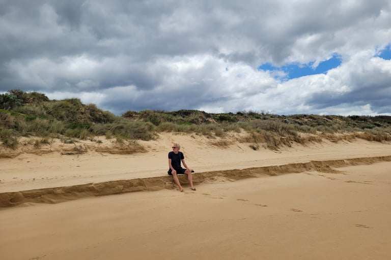 Am nächsten Tag brechen wir zum südlichen Zipfel des australischen Kontinents, dem Nationalpark Wilsons Promontory auf und sind von dieser Halbinsel, mit deren bis auf 550 m ansteigenden Bergen begeistert. Mal erinnert es an das skandinavische Fjäll, dann an Küstenabstriche Sardiniens; zwischendrin kommt die Assoziation „Irland“ und „Neuseeland“. Das Wetter ist sonnig bis wolkig und die Temperaturen liegen zwischen 13 und 18 Grad - auch nordskandinavisch. Wir unternehmen eine schöne Wanderung an der Küste entlang, der uns durch einen verwunschener Wald führt. Immer wieder schauen runde Felsen aus diesem heraus und wir schauen auf die wilden Strände hinab. Unser Campingplatz liegt am Strand und an einem Fluss, dessen unterschiedlichen hell- und rötlichen Brauntöne uns faszinieren.