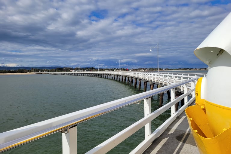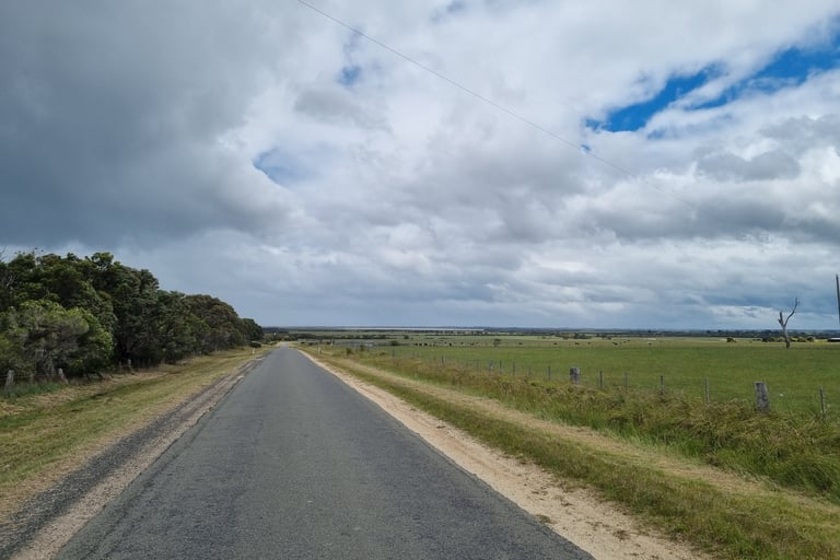 Schließlich verlassen wir die Küste, durchqueren das kaum bevölkerte, landwirtschaftlich geprägte Hinterland und machen eine Nacht Zwischenstopp im unspektakulären Port Welshpool, das in einer großen Bucht liegt, die für Angler ein Paradies ist. Auch ist es wegen seines über 900 m langen gebogenen Pier bekannt. Dieser wurde in den 1930 Jahren für die Marineschiffe gebaut und ist der größte Steg im Bundesstaat Victoria. Ein Feuer im Jahre 2023 hatte ihn zerstört und zwischenzeitlich wurde er wieder hergestellt. Inzwischen nutzen ihn die Angler.