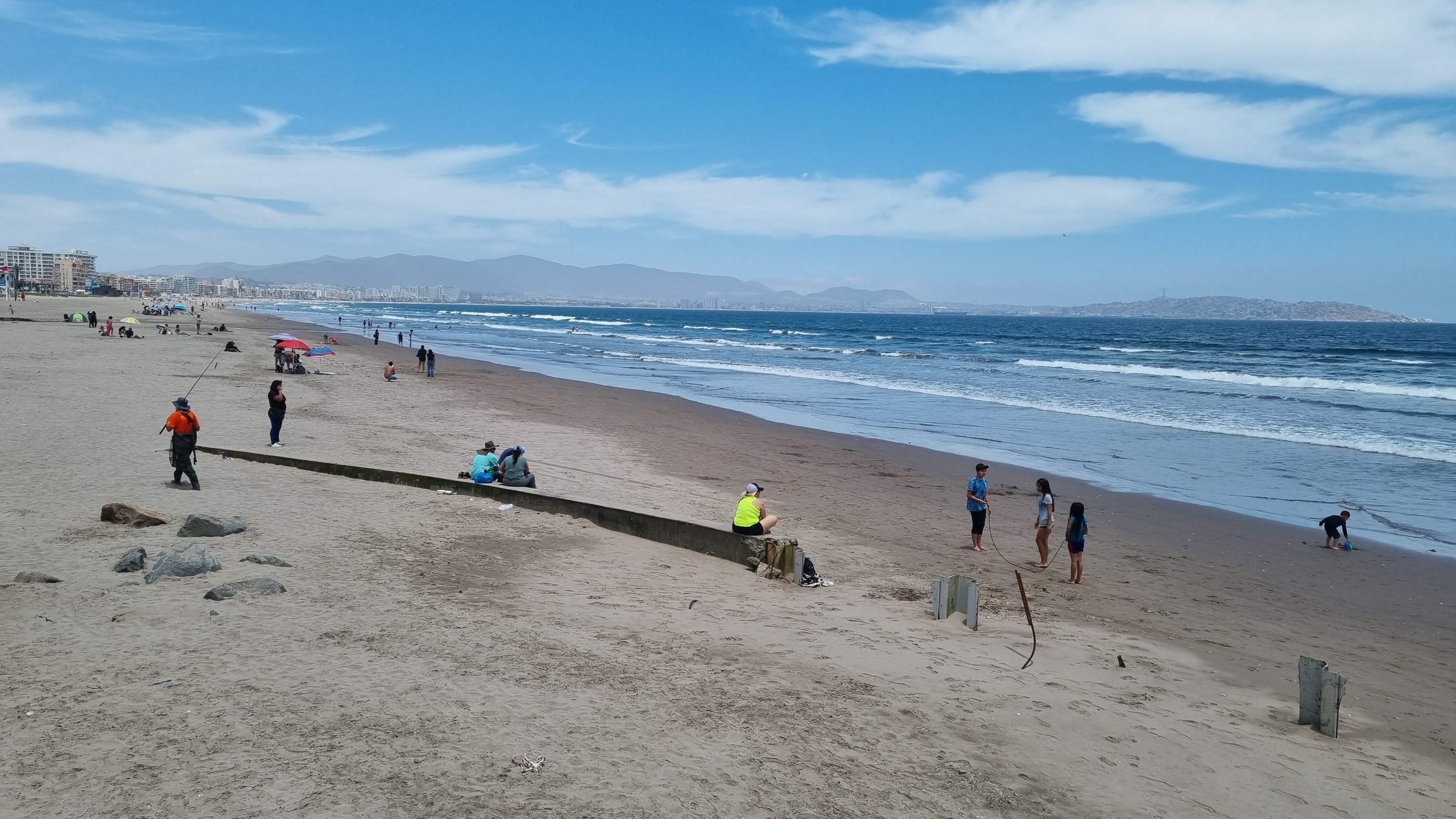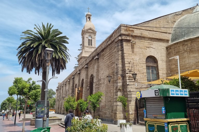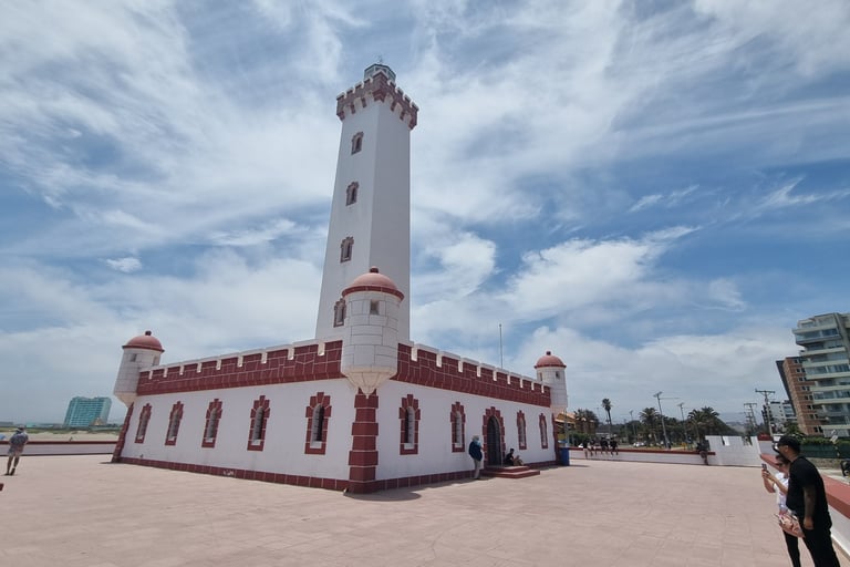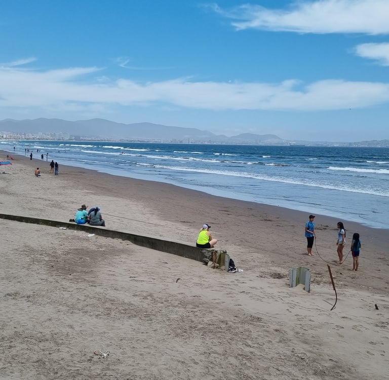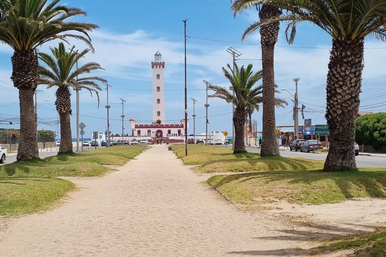 Wir erkunden am nächsten Tag die Stadt, die einen zentralen Platz und einen kleinen japanischen Garten hat. Beides nicht sonderlich spektakulär. Wir marschieren eine Allee zum Meer entlang, an dessen Ende der bekannte Leuchtturm von La Serena steht. Wer meint, bei Allee handelt es sich hier um eine schöne Flaniermeile, irrt. Es ist eine vierspurige Straße, die links und rechts von Büros und Gewerbebetrieben gesäumt ist und in der Mitte steht eine Doppelreihe von Palmen zwischen denen eine breite Sandfläche als Fussweg dient. Der Strand ist von Hochhäusern gesäumt. Es wirkt auf uns wie einer dieser spanischen Hochhaussiedlungs-Küstenorte, an denen wir nie Urlaub machen würden. Wir entscheiden unseren Aufenthalt um eine Nacht zu verkürzen und am nächsten Tag in das fünfzig Kilometer entfernt liegende Vicuna zu fahren.