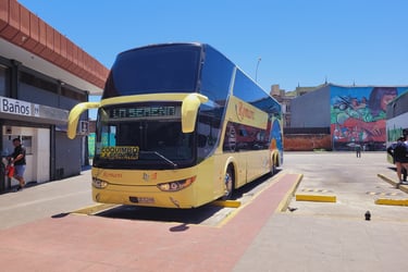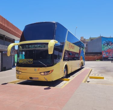 Von Valparaiso nehmen wir einen Bus in das sechs Stunden entfernt liegende La Serena. Die Busgesellschaften in Chile bieten unterschiedliche Kategorie an. Von einfach, über einfach mit Klimaanlage und normalen Reisebussen, die europäischen Standard entsprechen, bis hin zu Reisebussen, die insbesondere für Nachtfahrten breite und zu Betten umwandelbaren Sitzen anbieten. Wir nehmen die zweitluxuriöse Kategorie, die drei Sitze je Reihe hat, soliden Sitzabstand bietet und dessen Lehne sich weit nach hinten klappen lässt. Eine sehr entspannte Art zu reisen. Durch karge Täler und am Pazifik schlängelt sich die Straße entlang.