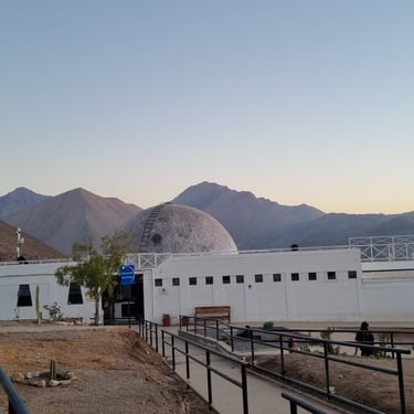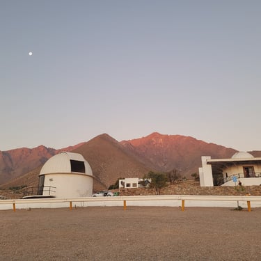 Auf den Bergen des Valle del Elqui liegen viele Observatorien, die meist der Öffentlichkeit allerdings nicht zugänglich sind. Eine besondere Ausnahme bildet das Mamalluca, das sich zur Aufgabe gemacht hat, Laien die Astronomie näher zu bringen. Per Shuttle gelangen wir abends zum zehn Kilometer auf einem Hügel liegenden Observatorium. Um das zentrale Observatorium herum gibt es auf dem Berghang sechs U-förmige Sitzmöglichkeiten, in deren Mitte jeweils ein Spiegelteleskop von ca. 140 cm Länge installiert ist. Pascal nimmt uns in Empfang und wir erfahren viel Neues. Auf der Nordhalbkugel wussten Seefahrer immer schon, wo Norden ist. Der Polarstern befindet sich genau in der Verlängerung der Erdachse. Auf der Südhalbkugel gibt es einen derartigen Stern nicht, deshalb orientiert man sich hier an dem Sternbild „Kreuz des Südens“. Der helle Mond steht hoch über uns, daher betrachten wir ihn durch das Teleskop und können die Krater sehen. Eine Besucherin fragt, ob man auch Satelliten sehen könne. Ja, und das sei ein Problem, vor allem dank Elon Musk, antwortet