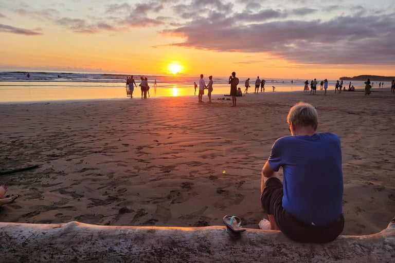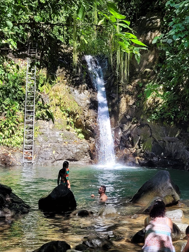 In vier Stunden fahren wir nach Uvita, berühmt für seinen Strand, der bei Ebbe wie die Schwanzflosse eines Wals aussieht. Da wir keine Drohne haben, können wir keine Luftaufnahme davon machen. Es ist über 30 Grad. Wir genießen die Sonnenuntergänge am Strand. Der Pool und einen nahen, schönen Wasserfall mit Becken besuchen wir und die Abkühlungen sind mehr als angenehm. Costa Rica wird die Schweiz Mittelamerikas genannt. Zum einen wegen der Berge und der Sicherheit, zum anderen wegen des Preisniveaus und das ist nicht ohne. Das Berliner Pärchen, mit dem wir im Überlandbus von Chile nach Argentinien gefahren sind, erwähnten, dass ihre Reise in Chile teurer als geplant ist. Er fasste dieses in der Aussage, „die Kreditkarte glüht“ zusammen. Ich mutmaße, dass er zu den Reisekosten in Costa Rica sagen würde „die Kreditkarte befindet sich im Übergang vom festen in den gasförmigen Aggregatzustand.“