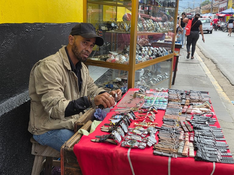 Am nächsten Morgen bekommen wir ein anderes Gesicht von Granada zu sehen: Nicht weit vom ruhigen Zentralplatz entfernt liegt der zentrale Markt. Wie so oft fasziniert uns das geschäftige Treiben. Kleidung, Lebensmittel, Smartphones, Gewürze, Schuhe werden an Ständen innerhalb und außerhalb der Markthalle verkauft. Ein Schneider näht hochkonzentriert mit einer alten Nähmaschine am Straßenrand und repariert einen Sportschuh, während der Fahrzeugstrom eineinhalb Meter entfernt an ihm vorbeischleicht. Ein paar Schritte entfernt repariert ein Uhrmacher feilend eine Uhr. Ruth dürstet es nach einer kühlen Limonade, mein Koffeinspiegel ruft nach Cappucino und so entern wir ein Café. Der Cappuccino schmeckt, als ob wir in Italien weilen.