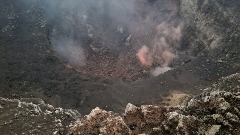 Mit dem Bus geht es zum Kraterrand. Im Dunkeln sehen wir den von der Lava orange-rot angestrahlten Dampf, der zeitweise scharf in Lungen und Augen beißt. Leider ist die glühende Lavamasse nicht mehr direkt zu sehen, da es vor einiger Zeit einen Erdrutsch gab. Daher sind wir ein klein wenig enttäuscht, dennoch war es ein interessanter und schöner Ausflug.