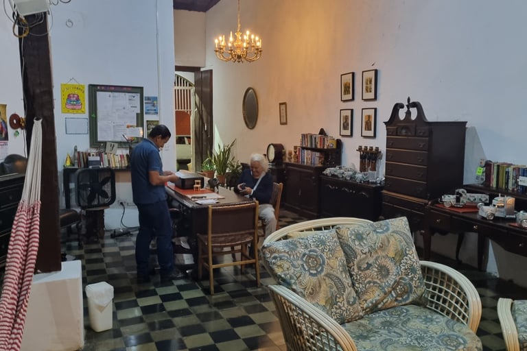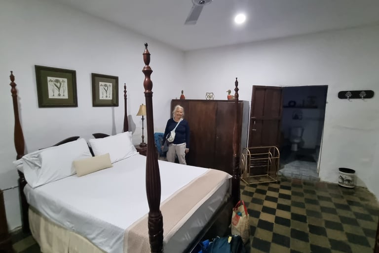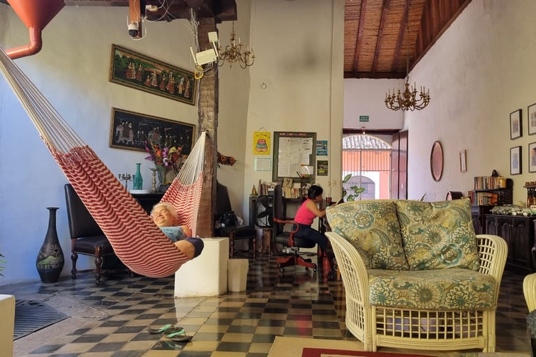 Unser Hostel in Granada hat koloniales Flair. Nicht nur unser Zimmer hat viele antike Möbel und Bilder. Es wirkt als ob es Modell für den Roman „Hundert Jahre Einsamkeit“ von Gabriel García Márquez stand. Insbesondere das Bett scheint aus dieser Zeit zu stammen, da wir einzelne Federn der sehr weichen zur Mitte abfallenden Matratze spüren können. Aber irgendwann schlafen wir dann doch ein.
