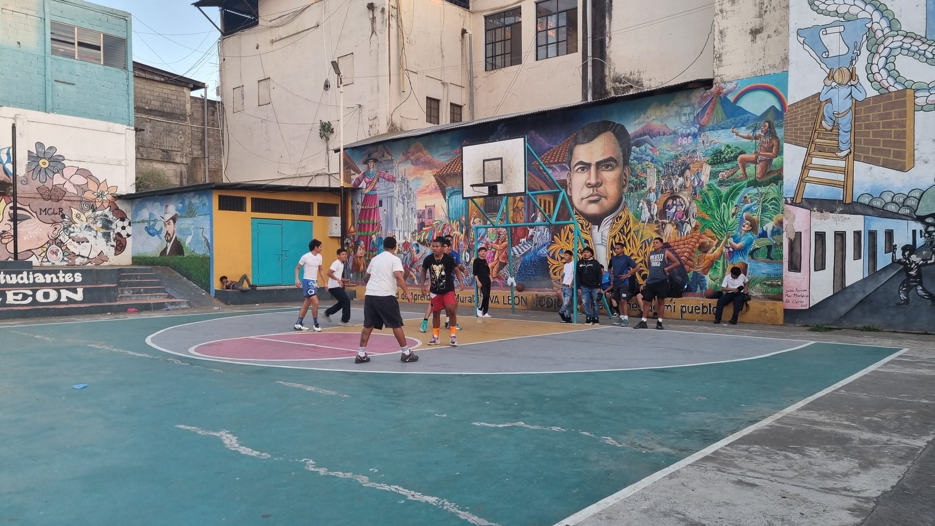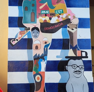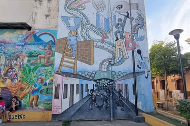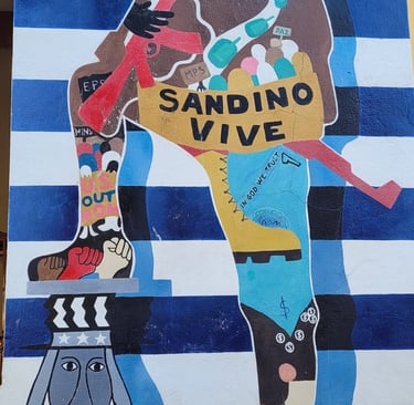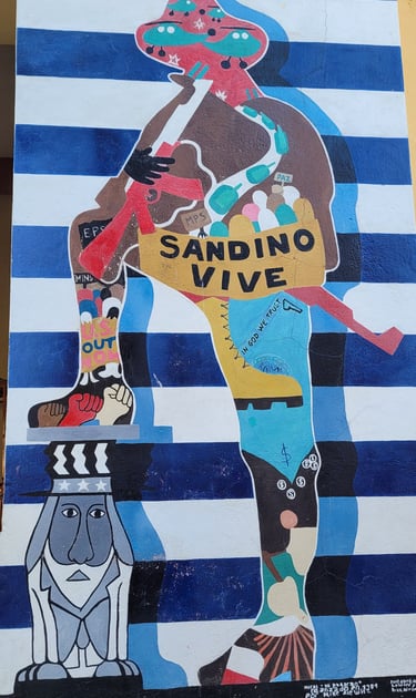 Wir starten an einem Wandgemälde, das von einem Hamburger Künstler gemalt wurde. Dieses Murales stellt die nicht ganz einfache Geschichte Nicaraguas wie in einem Crashkurs dar.