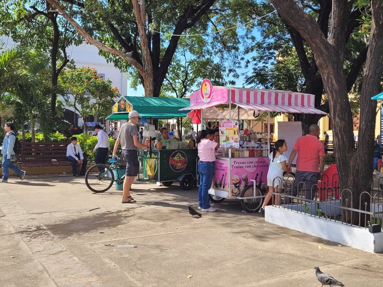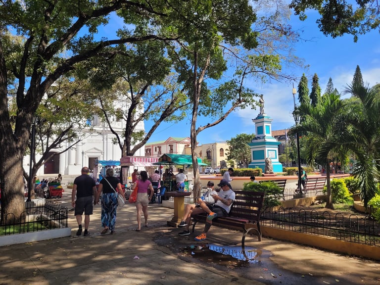 Um mehr über die Geschichte und aktuelle Situation zu erfahren, nehmen wir an einer Freewalkingtour teil. Gespannt hören wir unserem einheimischen Guide, der über die Geschichte einer Stadt und den Alltag der Menschen berichtet, zu. Unsere Gruppe ist klein und besteht aus einem brasilianischen Paar, einem jungen Mann aus Düsseldorf und uns. Während bei unserer Tour in Valparaiso unsere Reiseführerin Krisna entspannt erzählte, merken wir das unser hiesiger Guide sich immer wieder umschaut, da die Behörden kritisch die Freewalking-Touren beäugen. Drohnen sind in Nicaragua verboten. Doch schwebt über unserer kleinen Gruppe eine. Unser Guide meint, wir mögen ein Stück weiter gehen und wir stellen uns unter einen Baum. Da er eine englischsprachige Tour anbiete, sei die Gefahr, dass jemand hinterher spioniert, nicht groß. Er bittet uns, das wir das, was wir hören vertraulich behandeln und wir nennen daher hier auch nicht seinen Namen. Mit Freunden sprechen die Menschen in der Regel nicht über die Politik, berichtet unser Guide, da man nie weiß, was dann doch durchsickert. Meinungsfreiheit ohne Sanktionen ist leider mal wieder keine Selbstverständlichkeit. Dabei schildert unser Guide uns lediglich geschichtliche Fakten und betreibt keine politische Agitation. Mit den Einnahmen bessert er sein Einkommen von 700 US-Dollar auf, um seine Familie zu ernähren, teilt er uns mit.