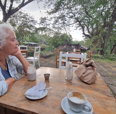 Nachdem wir unser Zimmer bezogen haben, erkunden wir das kleine an der Straße langgezogene Örtchen. Mir dürstet nach Cappuccino und wieder mal besuchen wir ein nettes Café. Auf halber Strecke entdecken wir eine Horde Brüllaffen in den Bäumen. Das Café backt auch selber und so erwerben wir begeistert ein leckeres Sauerteigbrot. Denn bisher gab es in Nicaragua nur Toast oder Baguette, das scheinbar mehr Luft als Mehl enthielt und beim Reinbeißen staubt.