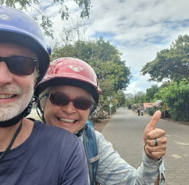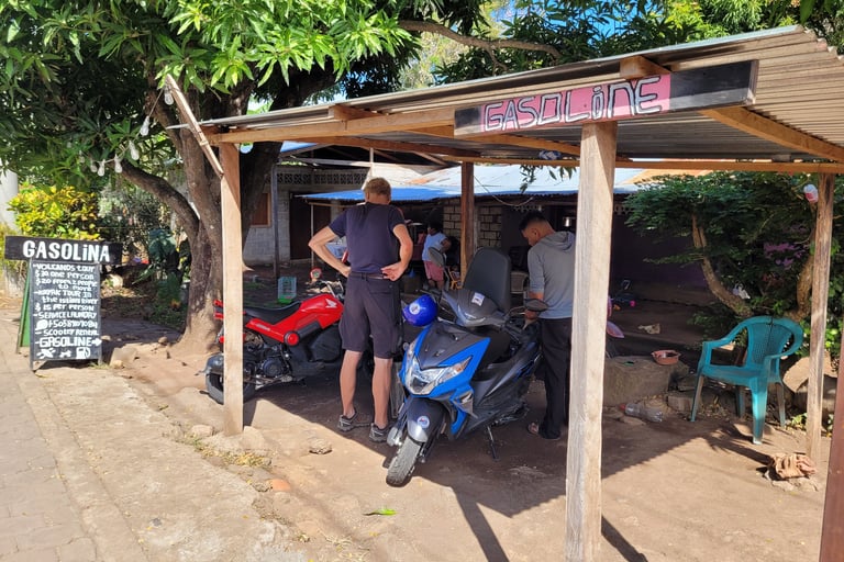 Wir mieten uns für zwei Tage einen Motorroller, dessen Bremsen besser sind als alle Gefährte, die wir in Indonesien gefahren sind. Die Vermietung wird von einer Familie betrieben. Während wir mit der Besitzerin uns über Zeitraum und Preis versuchen zu verständigen, putzt die Oma die vordere Scheibenbremse und macht die Rückspiegel sauber. Irgendwie knuffig. Die Familie spricht nicht Englisch, wir so gut wie kein Spanisch, aber mit Händen, rudimentären Worten, viel gemeinsamen Lachen regeln wir alles.