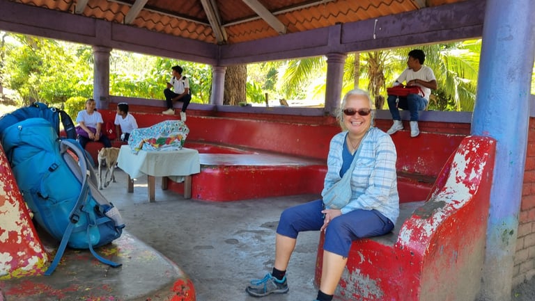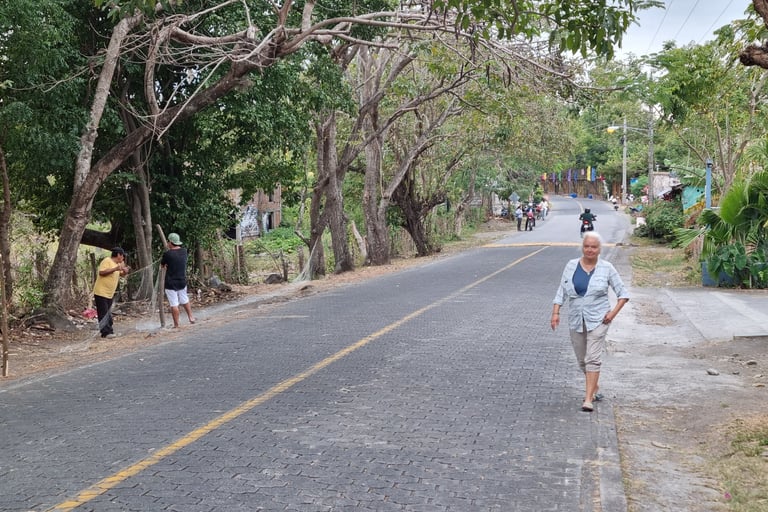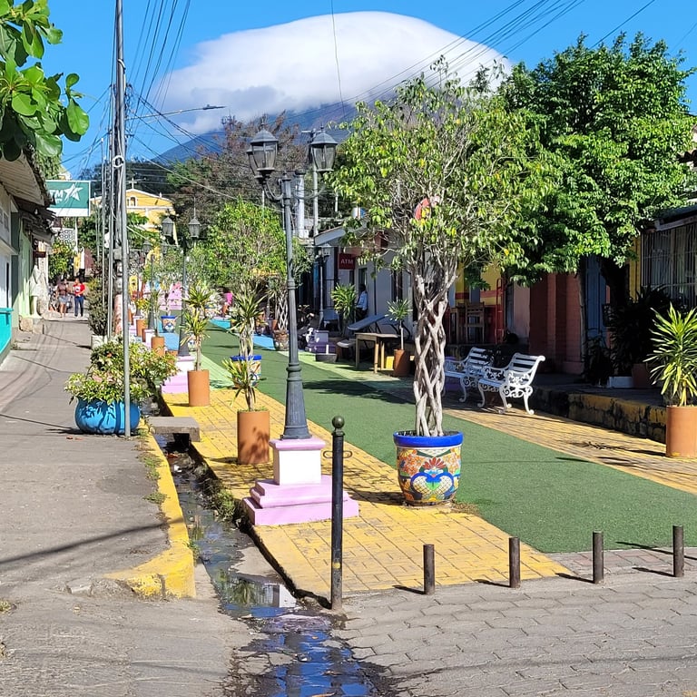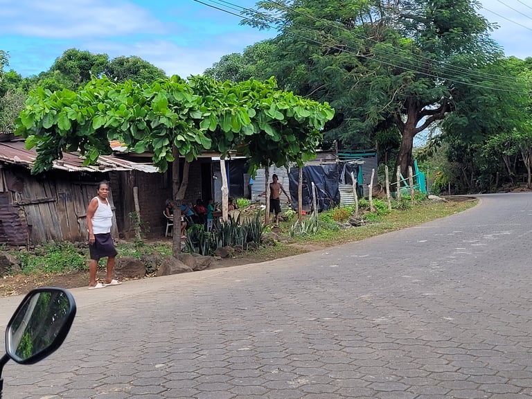 Als wir nachmittags durch Moyogalpa schlendern, passieren wir eine Frau, die gerade ihren Garten wässert. Sie spricht uns an und meint, dass wir heute zusammen im selben Bus unterwegs gewesen sind. Offensichtlich sind wir beiden etwas älteren Westler eine kleine Attraktion im Bus gewesen.