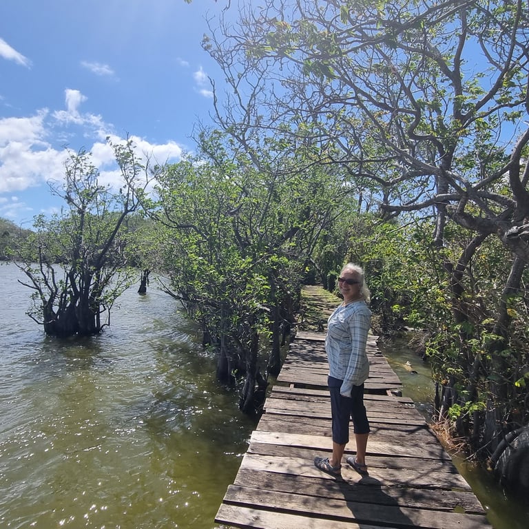 Wir fahren auf die westliche Inselhälfte zum Naturschutzgebiet „Charco verde“; zu Deutsch „grüne Pfütze“. Ein kleiner Rundweg umschließt diesen kleinen See, der entgegen der Aussage in Reiseführern nicht smaragdgrün glänzt, sondern in leichten Brauntönen. Wieder treffen wir auf Brüllaffen und erfreuen uns insbesondere an einem Äffchen, das gerade in Muttis Nähe seine neue Welt erkundet. Weiter geht es zu einer Landzunge im Südwesten, auf der die Wellen wie im dänischen Skagen von zwei Seiten aufeinander treffen. Die dunkle Sandzunge sieht wie ein Walrücken aus. Lange schauen wir Fischern beim halbkreisförmigen Auslegen eines großen Netz im Halbkreis vom Ufer aus zu.