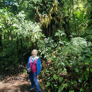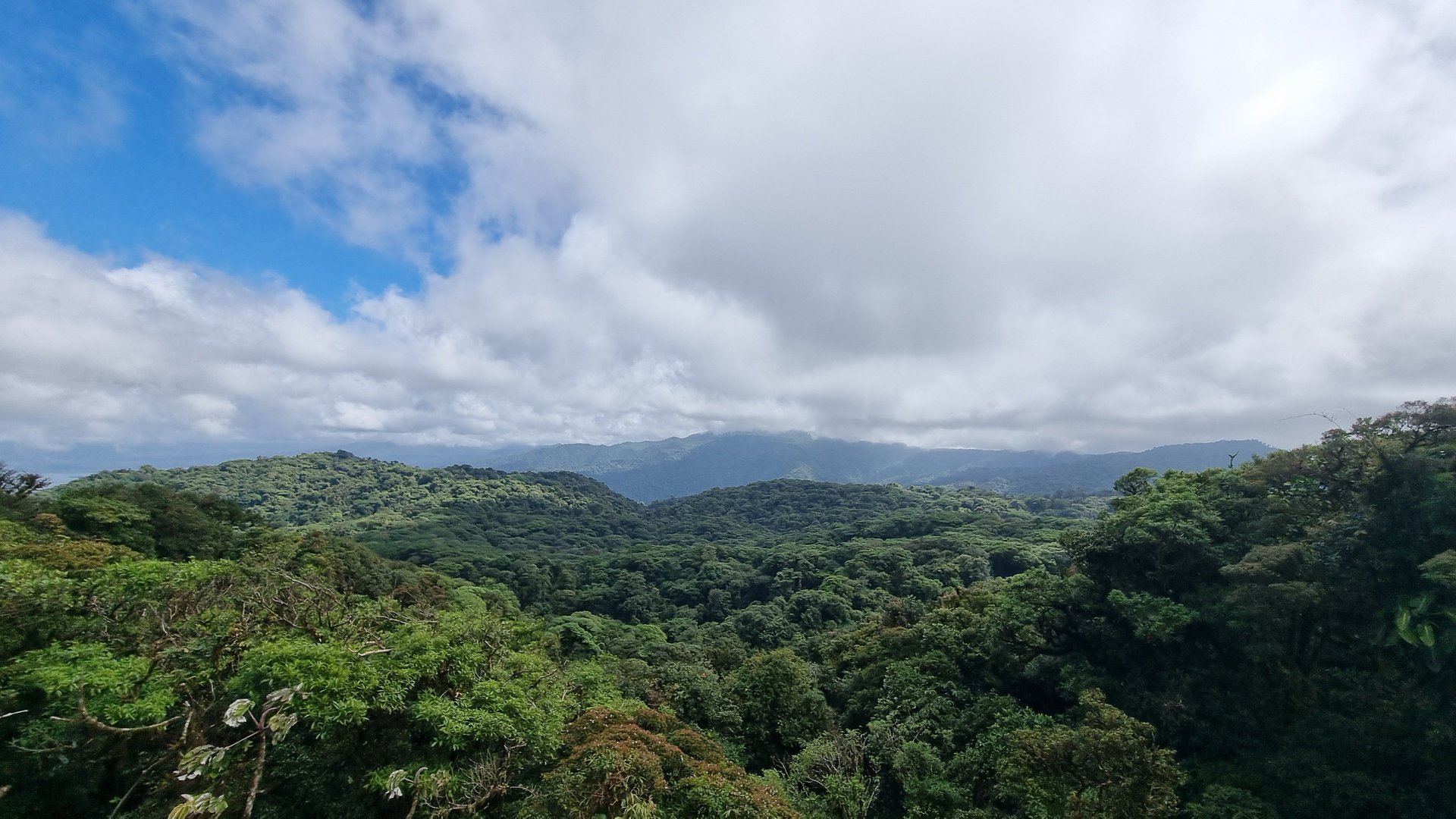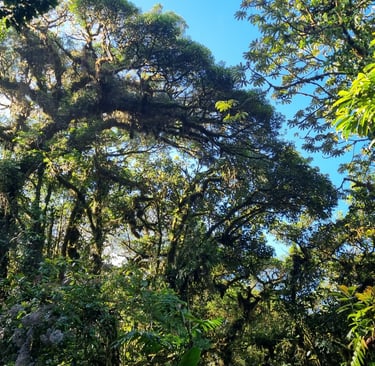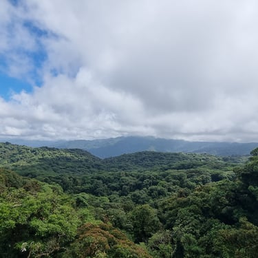 Costa Rica hat zwei Küsten und dazwischen befindet sich das bergige Hochland. Von der Küste sehen wir täglich über dem zentralen Bergrücken weiße Wolken. Wir fahren in das sich auf 1.600 m Höhe befindende Santa Elena, das am biologischen Reservat Monteverde liegt. Diese Gegend ist für seine immergrünen Nebelwälder bekannt. Die Wolken sorgen immer für Feuchtigkeit. Im Englischen werden sie passenderweise Cloudforest genannt. Der Unterschied zum Regenwald besteht darin, dass Nebelwälder höher liegen und hier immer feucht sind, während im Regenwald die Regengüsse heftiger sind.