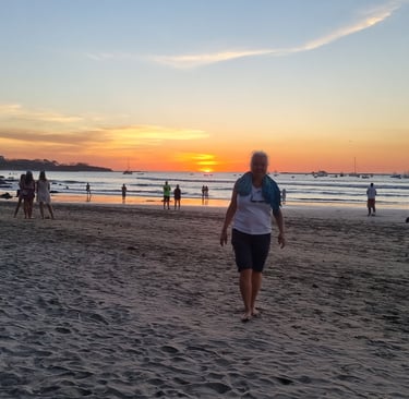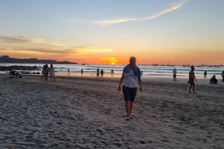 Wir bedanken uns bei den beiden und holen erst mal unser Gepäck, das wir bei Mehmet (dem Schwiegervater von meinem Kollegen Philip) zwischengelagert haben (siehe Blog#30). Besten Dank, Philip, dass du den Kontakt zu Mehmet hergestellt hast. Da wir als nächstes in die Berge und anschließend an die Karibikküste weiterreisen werden, bietet sich uns zum letzten Mal die Möglichkeit, einen Sonnenuntergang an der pazifischen Küste von Costa Rica zu genießen. Leicht wehmütig betrachten wir das orange Spektakel.