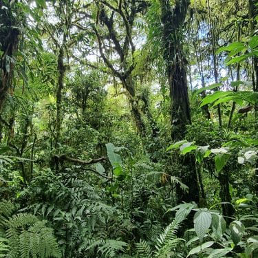 Ein Guide führt uns durch den Nebelwald. Heute scheint die Sonne. Das sei selten der Fall. Normalerweise sei man hier in Wolken eingebettet, schildert er, während er uns den Aufbau und die Flora des Waldes erklärt. Ein Kolibri-Nest und eine Vogelspinne in ihrem Bau zeigt er uns. Von einem Aussichtsturm schauen wir über die Baumwelt. Leider sehen wir keine Faultiere. Dennoch eine schöne Wanderung durch eine tolle grüne Landschaft.