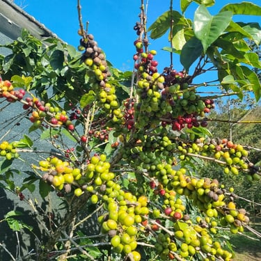 Arabica-Kaffeepflanzen wachsen ausschließlich in Höhen von über 1.000 m. Wir besuchen eine Kaffeeplantage bei Santa Elena, wo uns der Kaffeebaum und der gesamte Prozess vorgestellt wird. Der Rundgang ist sehr informativ. Zuerst gehen wir zu den Setzlingen von Kaffee, bevor wir uns Kaffeebäume anschauen. Dann wird gezeigt wie die Kaffeebohne vom Fruchtfleisch getrennt wird. Danach werden die Bohnen geschält, gewaschen und getrocknet. Nach dem Trocknen wird die Bohne nochmal geschält und anschließend beginnt der Röstprozess.