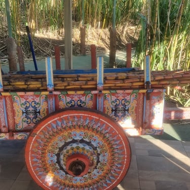 Abschließend wird uns noch gezeigt, wie Saft aus Zuckerrohr, das reichlich in Lateinamerika wächst, gepresst wird. Destilliert nennt man diesen Saft dann Rum.