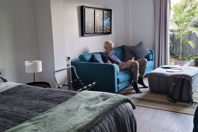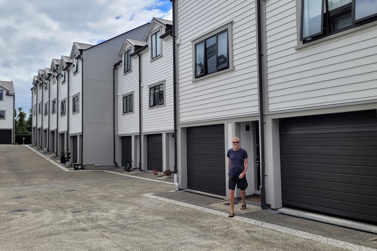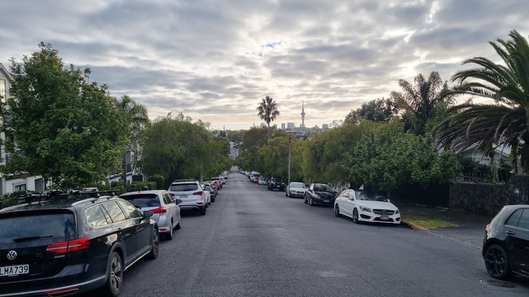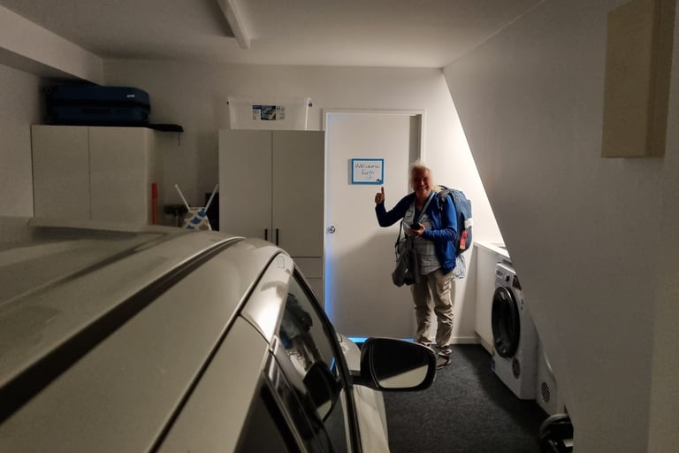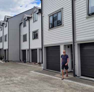 Wir ziehen bei Emma und ihrem Sohn Finn in einem netten Stadtteil von Auckland ein. Ihr Haus liegt in einer Anlage mit vielen Reihenhäusern. Jedes Haus hat im Erdgeschoss eine Haustür und direkt daneben eine Garage. So treten wir durch die Tür in den kleinen Hausflur. Geradeaus versteckt sich hinter einer Tür der Aufgang zu der Wohnung der beiden, in den beiden oberen Stockwerken. Wir gehen links und stehen in der Garage, an dessen Ende unser nettes Appartement mit kleinem Garten liegt. Das Abwaschbecken befindet sich in der Garage und so waschen wir unser Geschirr neben der Motorhaube von Emmas Wagen ab. Die gesamte Garage hat Teppichboden und der Kleinwagen von Emma steht dort wie in einem Showraum. Irgendwie schon witzig. Das Appartement ist gut ausgestattet und die Küche mit Espressomaschine und einem elektrischen Milchaufschäumer begeistert mich alten Kaffeejunkie.