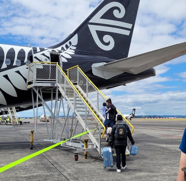 Nach 12,5 Stunden landen wir in Auckland und als erstes erleben wir eine kleine Schnitzeljagd des hiesigen Zolls...