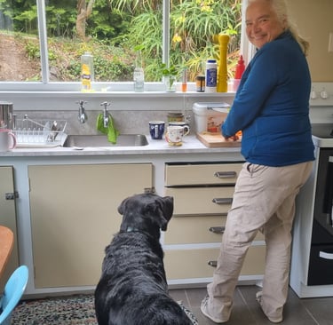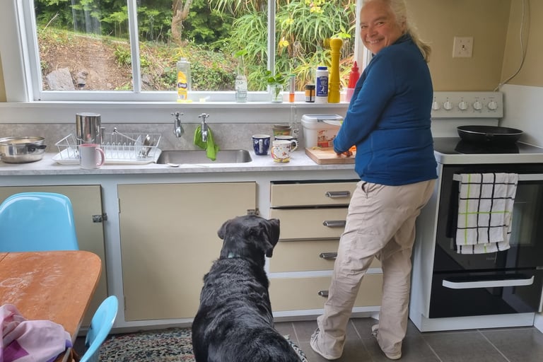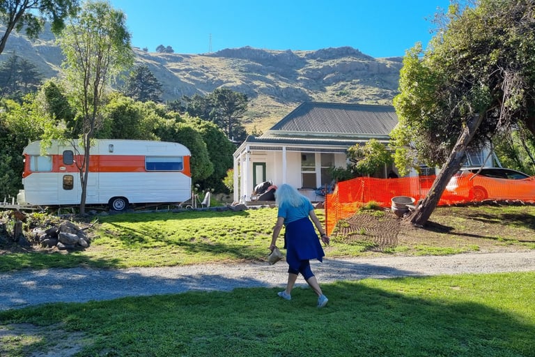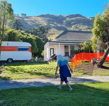 Eh wir uns versehen sind die drei Tage in Auckland vorbei und wir nehmen den Flieger nach Christchurch. Halbstündig fliegen verschiedene Airlines die zweitgrößte Stadt Neuseelands an. Im Gegensatz zu Deutschland sind die Flugzeuge hier nach dem Auto das wichtigste Fortbewegungsmittel. Würde man die Bahn nehmen, benötigt man zwischen 24 und 28 Stunden für die 1.000 Kilometer, da auch eine dreistündige Fährüberfahrt von der Nord- auf die Südinsel auf dieser Strecke erforderlich ist. Ein Flugzeug benötigt weniger als eineinhalb Stunden. Wir landen nachmittags und werden von unserer Freundin Lyn abgeholt. Lyn, ihren Mann Cam und ihren Sohn Joe haben wir vor zehn Jahren kennengelernt. Unsere Freundin Bibbi hatte damals den Kontakt hergestellt. Als sie hörte, dass wir beide mit behinderten Menschen beruflich zusammenarbeiten und nach Christchurch reisen, fragte sie bei Lyn an, denn Lyn gründete 2001 Jolt, das Tanzprojekte für Menschen mit Behinderung anbietet. Die Gastfreundschaft von Lyn und Cam ist mal wieder unglaublich. Sie haben für uns den Wohnwagen von Lyns Schwester vor ihr Haus gestellt. Als wir ankommen begrüßt uns ein Familienmitglied, das wir noch nicht kennen: Koda, ein Labradorhund, der ungewöhnlicherweise so gut wie nie bellt. Dafür liebt er es, wenn wir Ball oder Frisbee werfen. Schnell schließen wir Freundschaft mit ihm und morgens begrüßt er uns begeistert.