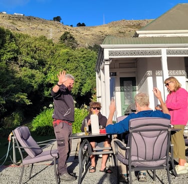 Weiter geht es zum Eisessen nach Lyttelton und in ein nettes Café, das wir bereits vor zehn Jahren geentert hatten. Zum Abschluss holt Cam seinen zweisitzigen Lotus, Baujahr 1996 heraus. Dicht über dem Asphalt sitzend, mit röhrenden Motor und wehenden Haaren haben wir beide jeweils Spaß daran, mit ihm durch die nähere Umgebung zu cruisen, bevor es ins nahegelegende Pub zum Abendessen geht.