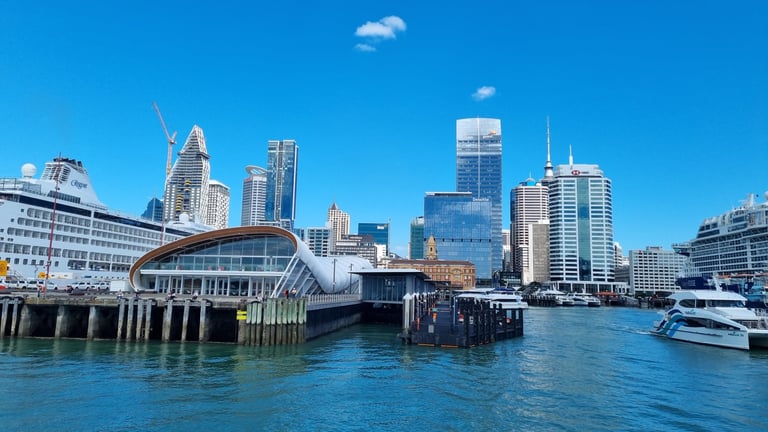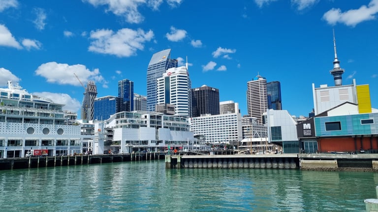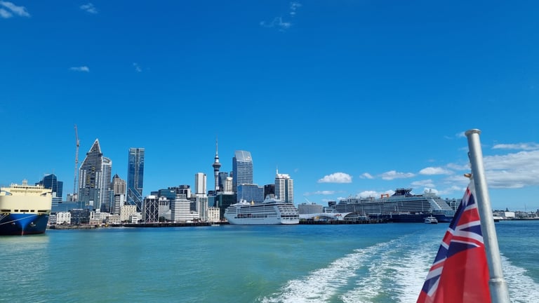 Nachdem wir ausgeschlafen haben, fahren wir in die Innenstadt, schlendern durch diese und besichtigen den Hafen mit der Waterfront. Auckland wird auch city of sail genannt, denn Segeln ist hier sehr beliebt. Mehrmals gewann Neuseeland den prestigeträchtigen Admirals Cup. Das entspricht ungefähr dem, als wenn die DFB-Auswahl Europameister werden würde. Im Hafen sind ehemalige Segelyachten zu sehen, die den Admirals Cup gewonnen haben.