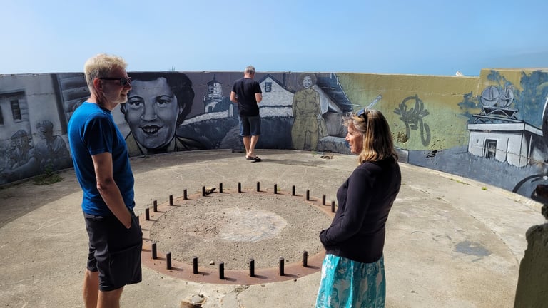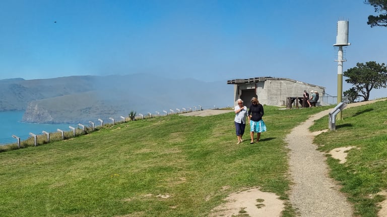 Wir fühlen uns sofort wieder heimisch. Lyn, Joe und Cam nehmen uns wie Familienmitglieder auf und folglich gibt es am Sonntag einen Familienausflug. Wir fahren mit Lyn und Cam durch den Nobelstadtteil Sumner auf die östlich gelegene Halbinsel und besuchen die Godley Head Gun Battery, eine militärische Verteidigungsanlage aus dem zweiten Weltkrieg, von der aus der Naturhafen von Lyttelton geschützt wurde. Wir wussten, dass australische und neuseeländische Soldaten, die sogenannte ANZAC (Australian and New Zealand Army Corps), im ersten und zweiten Weltkrieg auf britischer Seit in Europa gekämpft haben, aber dass der zweite Weltkrieg auch hier stattfand, war uns unbekannt. Die Anlagen wurden angelegt, um den Hafen vor japanischen Angriffen zu schützen. Inzwischen ist die alte Abwehrbatterie idyllisch von Farmland umgeben und mittendrin befindet sich ein einfacher Campingplatz.