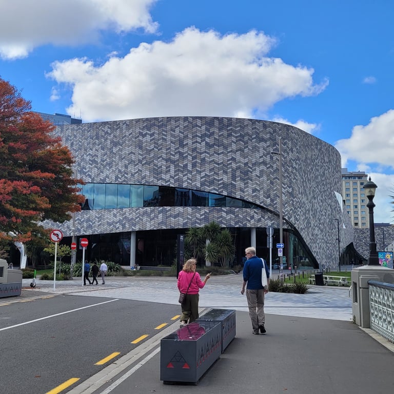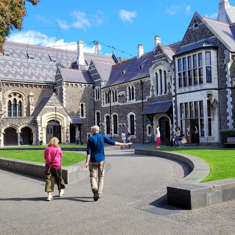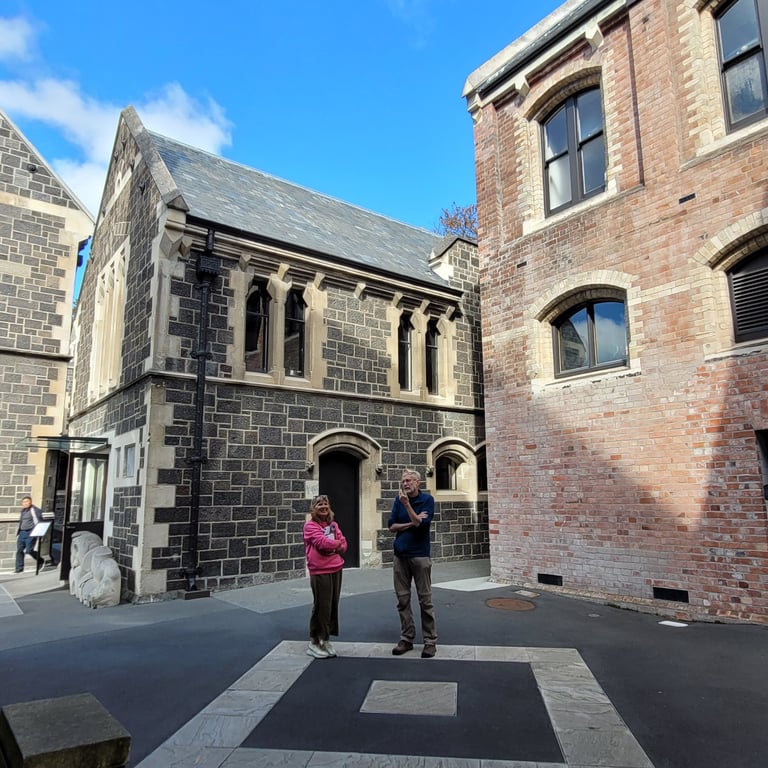 Mittwoch hat Lyn frei. Statt sich nach zwei anstrengenden Tagen zurückzulehnen, bietet sie uns eine Stadtführung in Christchurch an. Wir besuchen unter anderem die alte Universität, die inzwischen eine Kunstzentrum ist und gehen auch in ein neues Museum. Der Museumsbesuch ist für die Bürger Neuseelands kostenlos. Eine sehr sinnvolle Entscheidung, die uns in Europa auch gut täte. Denn zum einen würde dieses auch Menschen mit weniger Einkommen den Besuch ermöglichen und zum anderen geht man dann sicher öfters ins Museum. Wie oft ist es so, dass wir Eintritt zahlen und dann selbstverständlich möglichst viel, wenn nicht sogar alles in einer Museum sehen wollen. Spätestens nach Besichtigung der Hälfte einer Ausstellung läuft die zerebrale Festplatte über. Wäre der Eintritt kostenlos, würde man sicher das Museum tageweise in Häppchen genießen und sich den einzelnen Ausstellungen oder Abteilungen intensiver zu wenden.